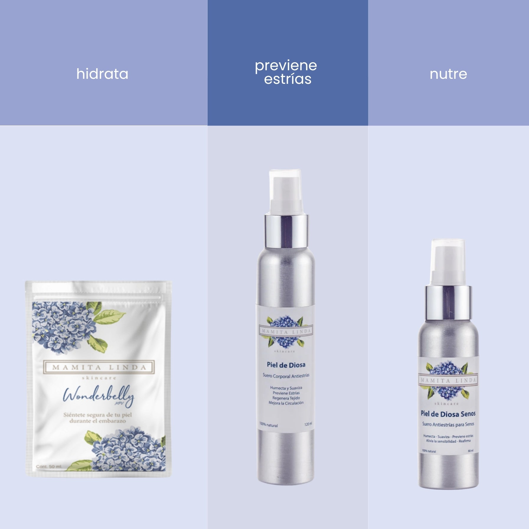 El Kit Embarazo más completo para proteger, hidratar y prevenir estrías en el vientre y los senos, mientras disfrutas de momentos de conexión y apapacho contigo misma.