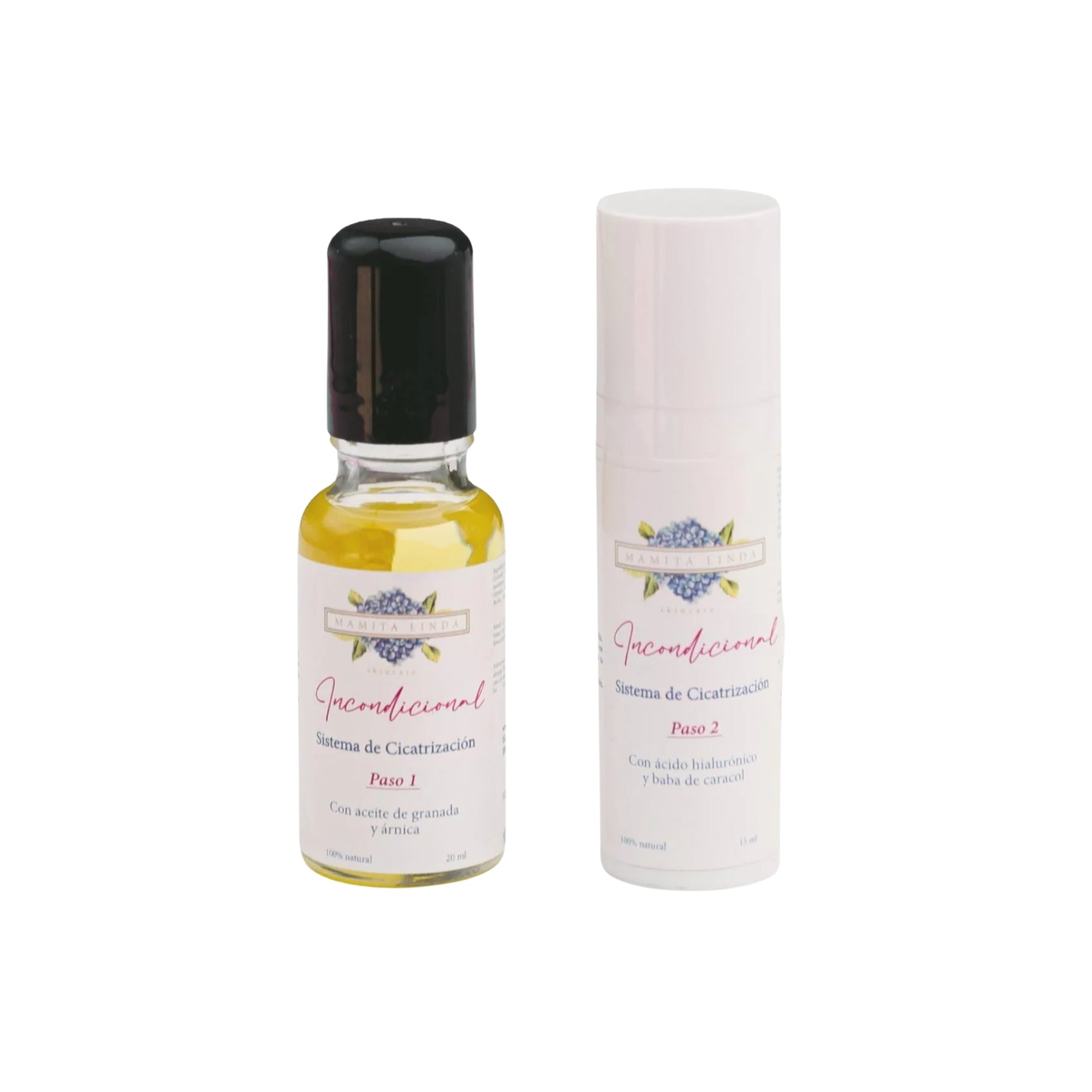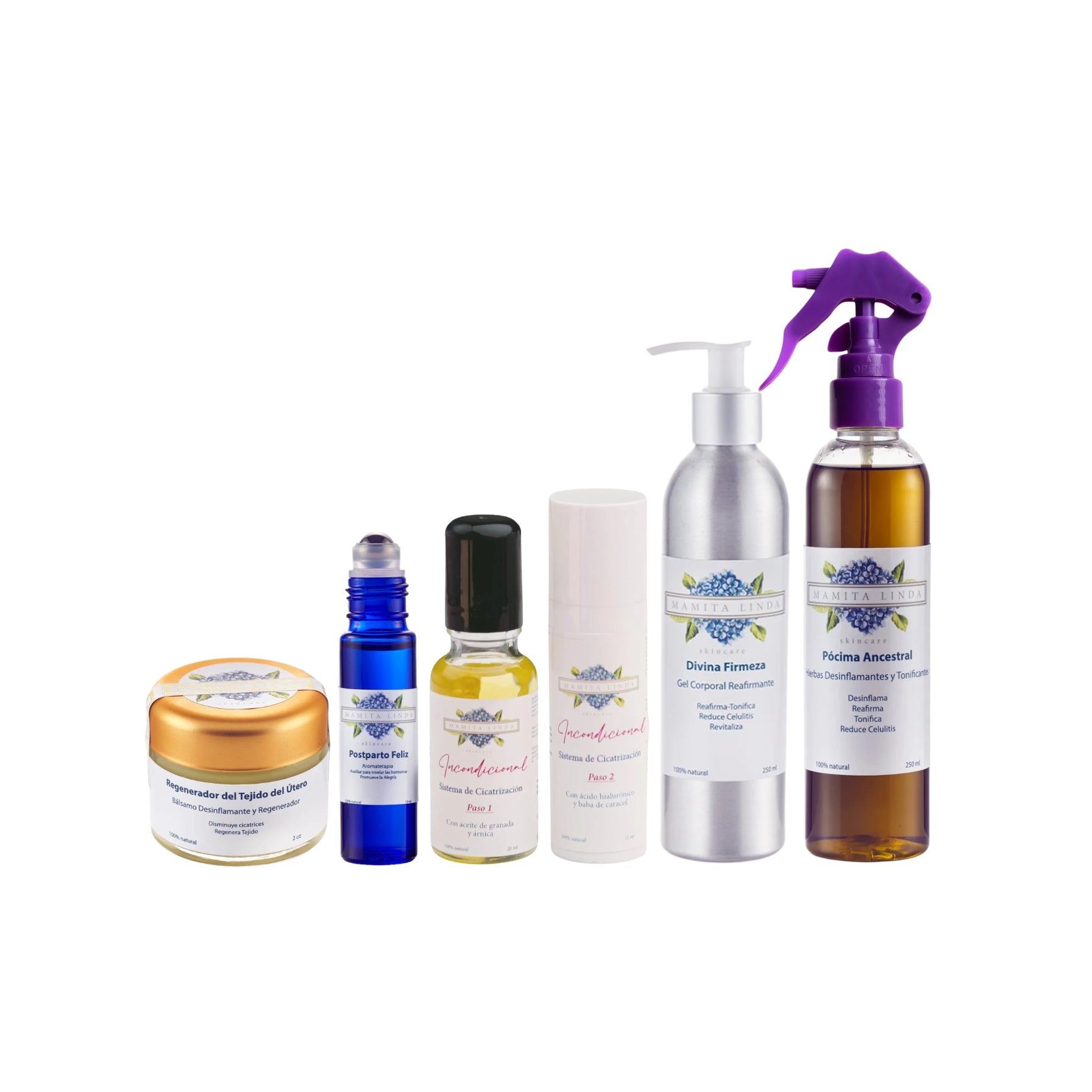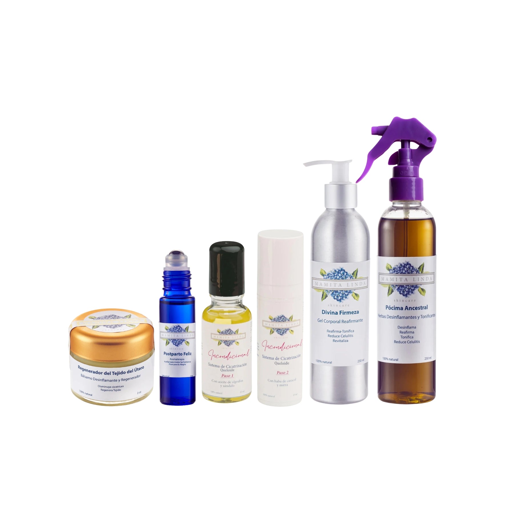 El Kit Cesárea combina cuatro fórmulas naturales diseñadas para sanar, reafirmar y regenerar la piel, mientras brindan alivio y bienestar emocional.