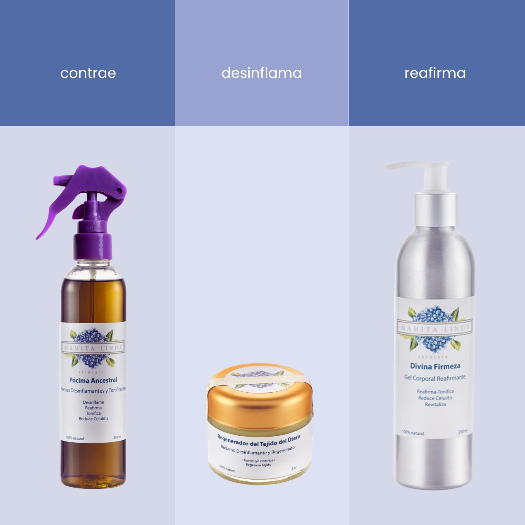 El Trío Renovador Esencial combina tres fórmulas naturales que trabajan en sinergia para devolver firmeza, vitalidad y bienestar a tu cuerpo mientras reconectas contigo misma.